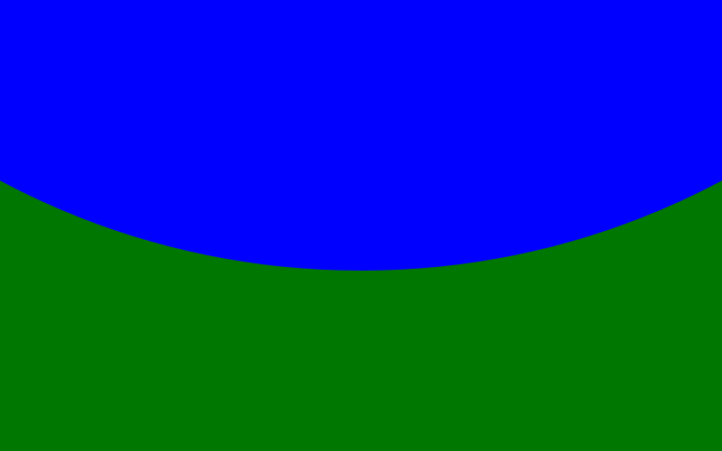 Proporcje 5:8. Przedzielona łukiem okręgu przecinającego krótsze boki w 3/5 wysokości i z najniższym punktem w 2/5.