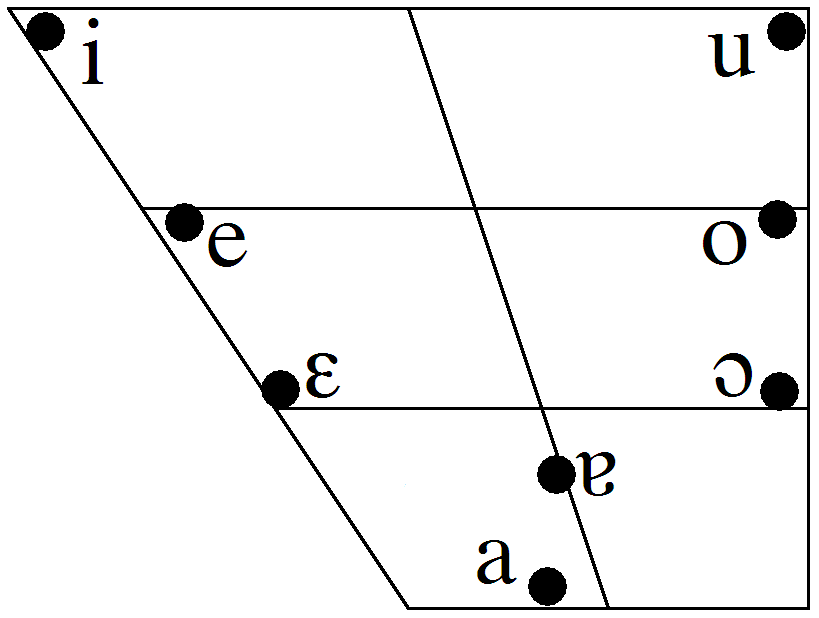 Diagram przedstawiający samogłoski w języku noliczańskim.